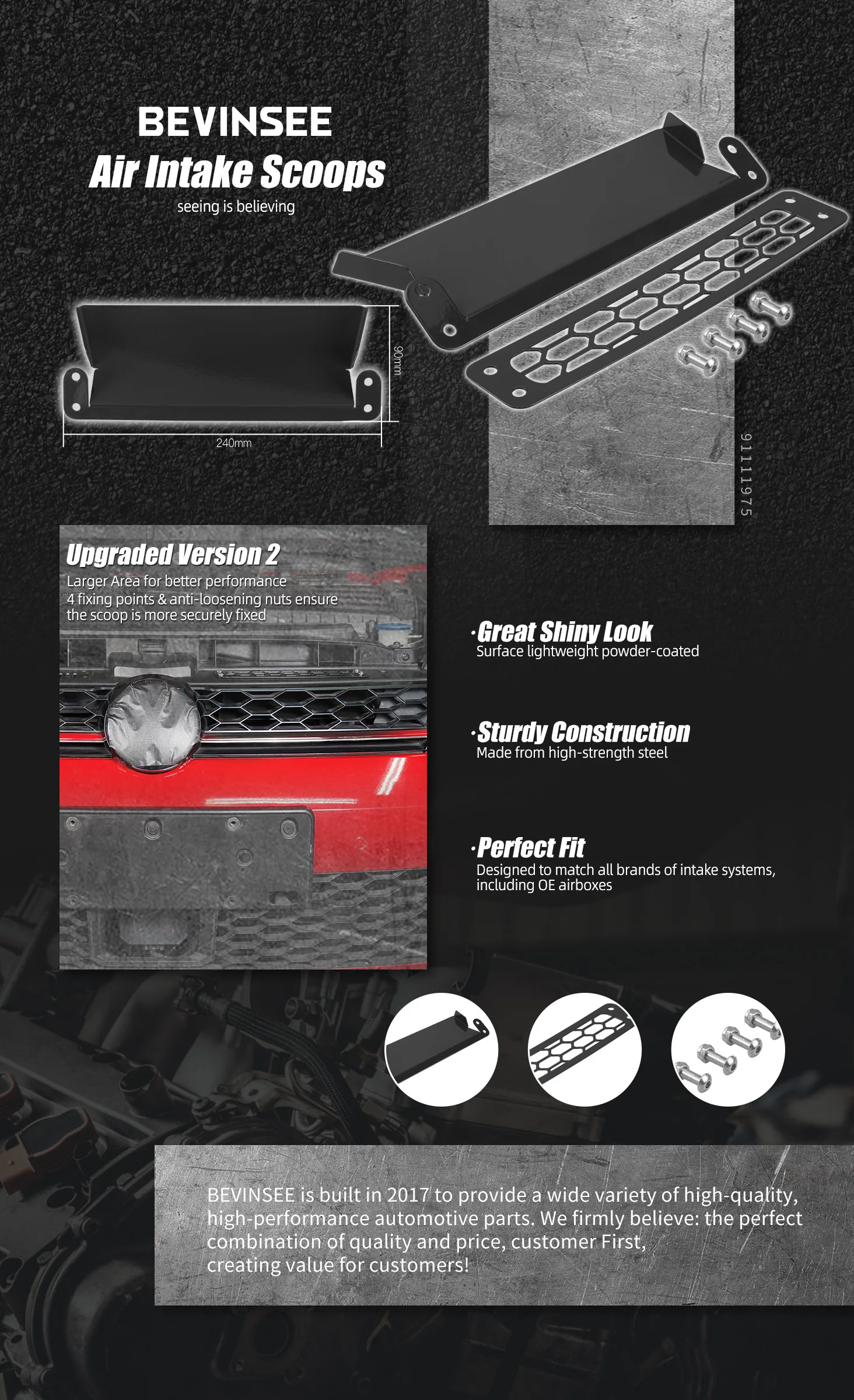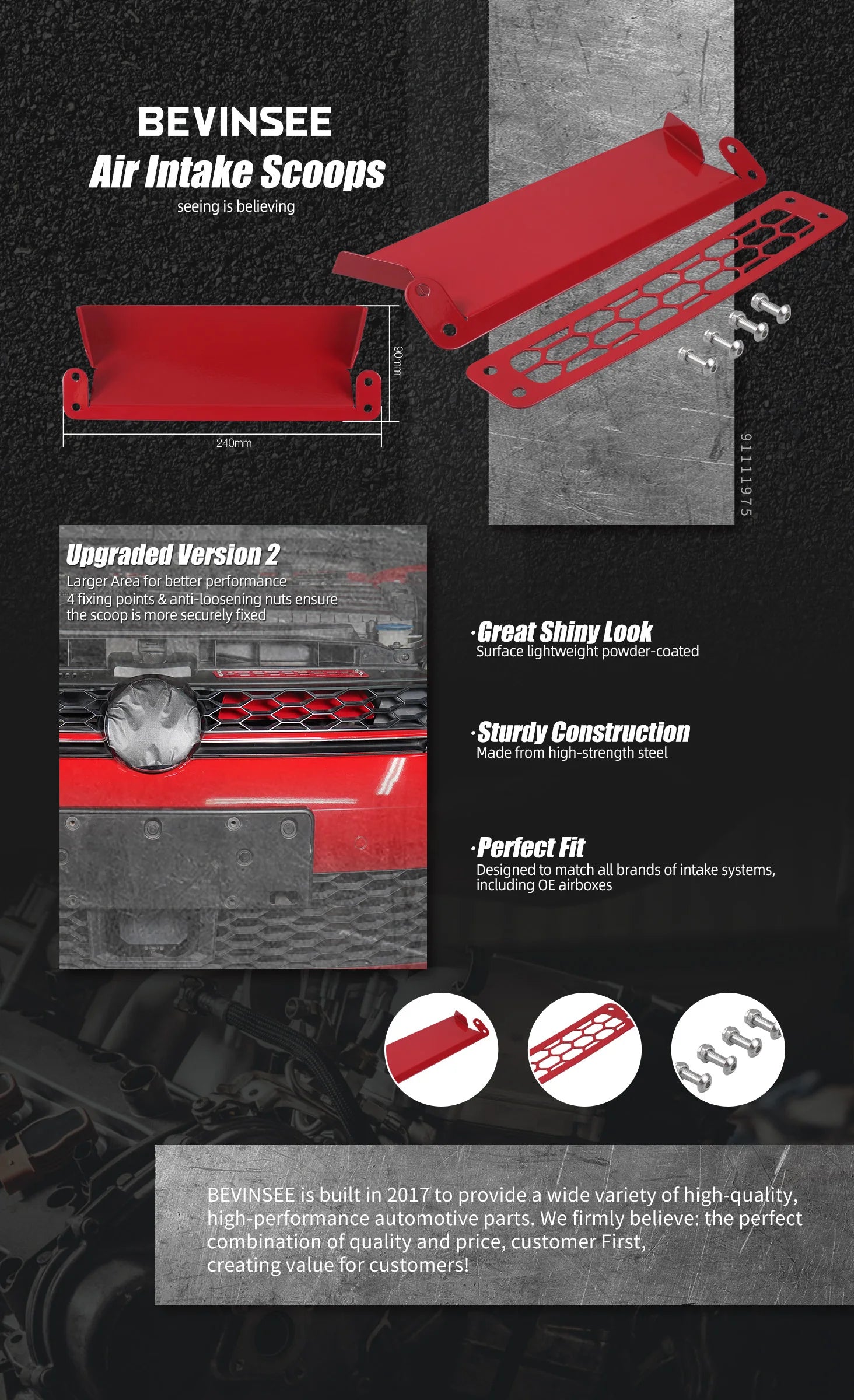 【Perfect Fit】BEVINSEE intake scoops are designed to match all brands of intake systems, including OE airboxes.