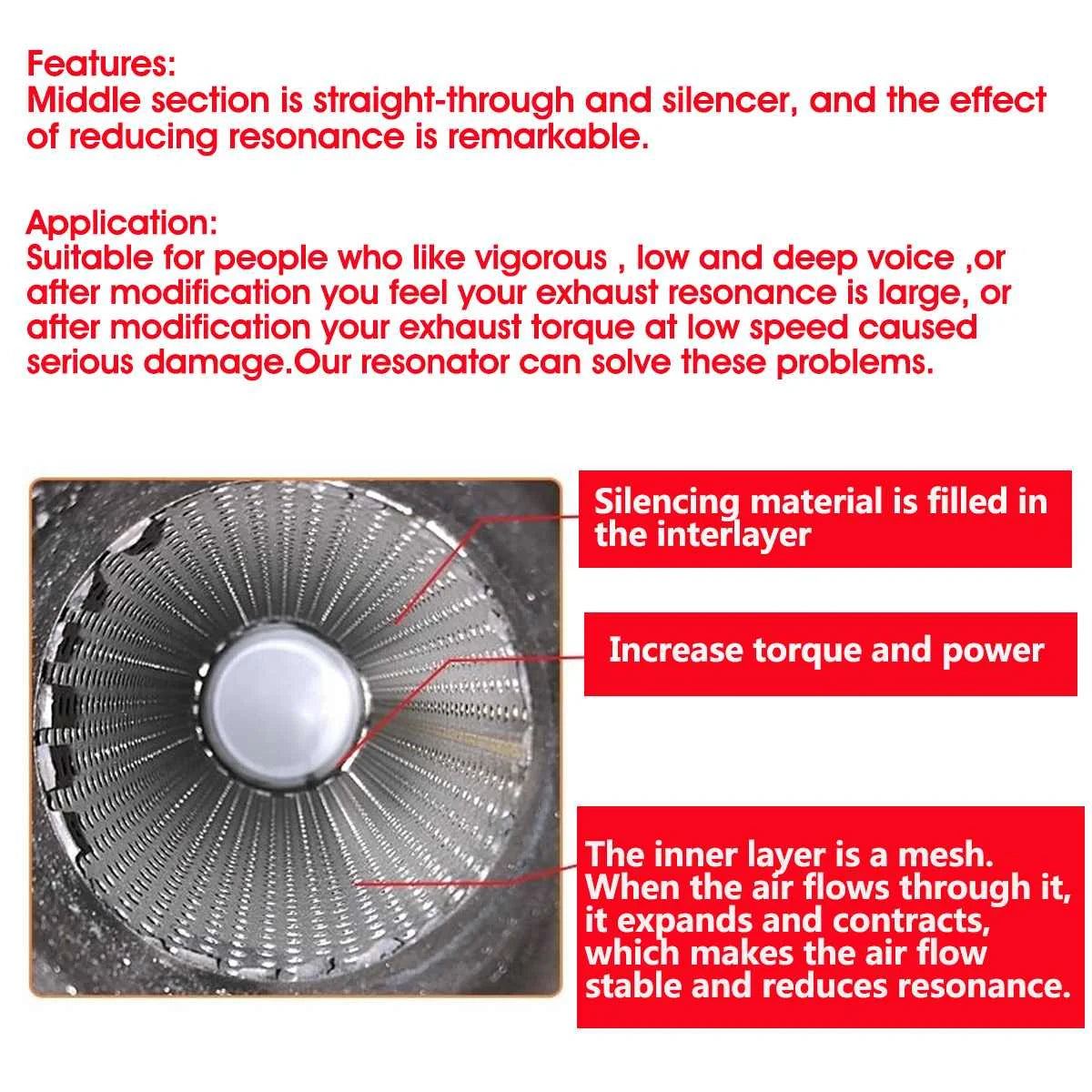 2" 50mm Universal Car Resonator Exhaust Pipe Muffler Stainless Steel Muffler Tip Exhaust Tail Tube Silencer 16inch Long