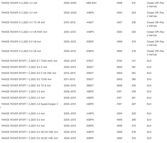 MODEL10: RANGE ROVER III (L322) 4.4 V8 AWD 4x4 2004-2012 448PN